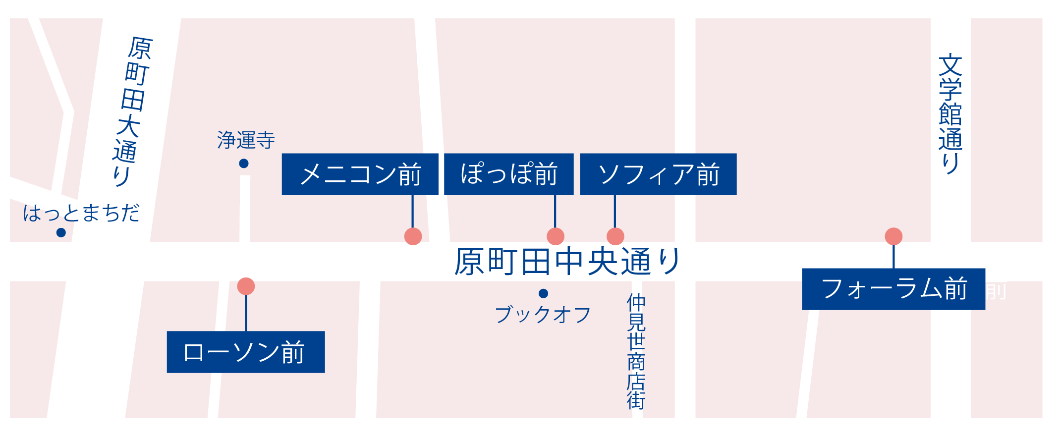 ・区画と区画の間は後方住居への通路となります。接客時も通路は塞がないよう注意してください。