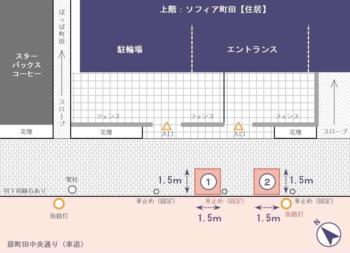 ・貸出エリアと後方の住居の間は住民の方や店舗へのお客さまが通るため、荷物で塞がないよう注意してください。